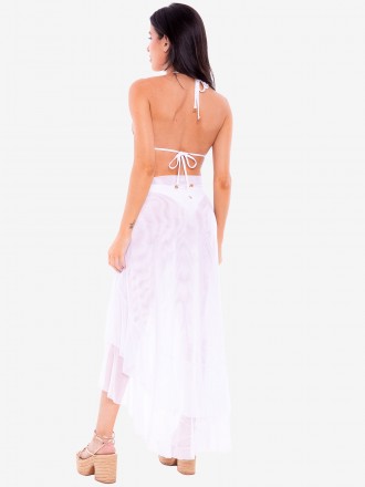 Vestido saída confeccionado em tecido tipo anarruga com textura xadrez que não amarrota.